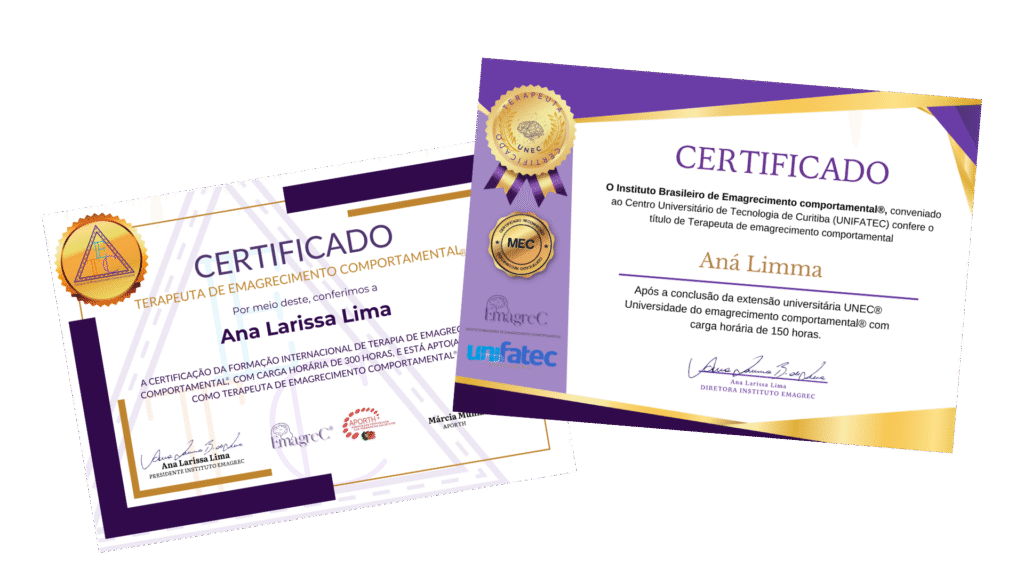 Eu sou a Ana Larissa Lima, sou CEO, mentora do Instituto Brasileiro de Emagrecimento Comportamental e criadora da da Formação Universidade do Emagrecimento Comportamental.