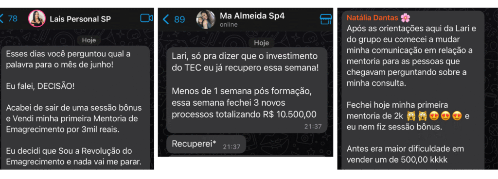 Mas já existem profissionais como você aplicando o método e colhendo resultados reais, olha só: